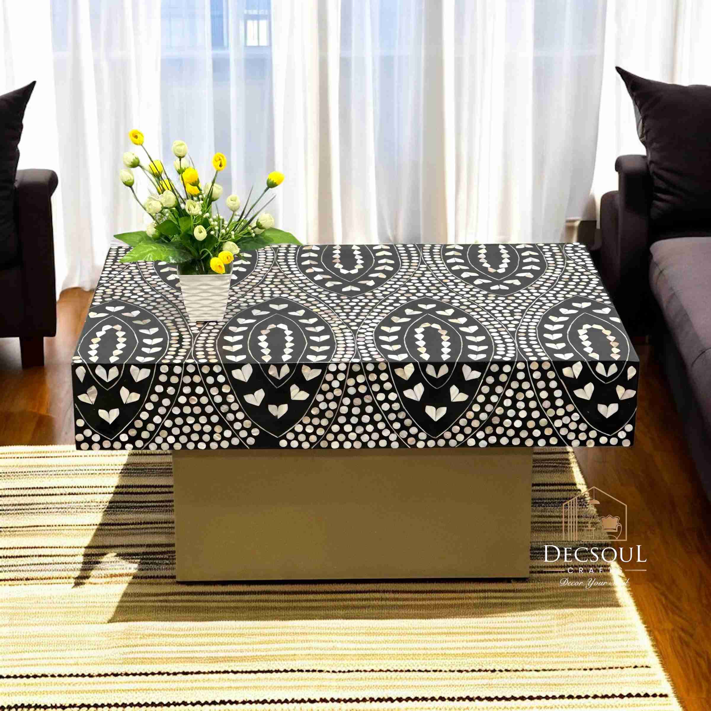 Experience the perfect blend of tradition and modern luxury with the Mother of Pearl Inlay Coffee Table from Decsoul Crafts.